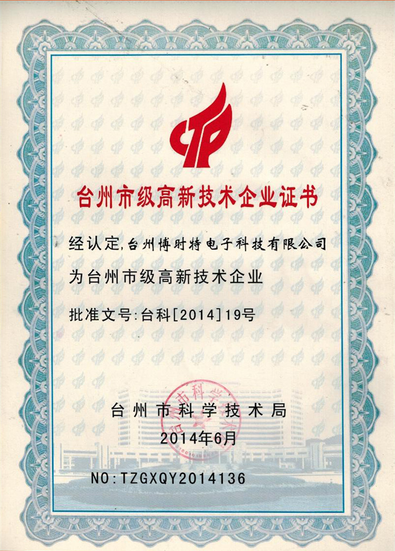 臺州市高新技術(shù)企業(yè)證書(shū)